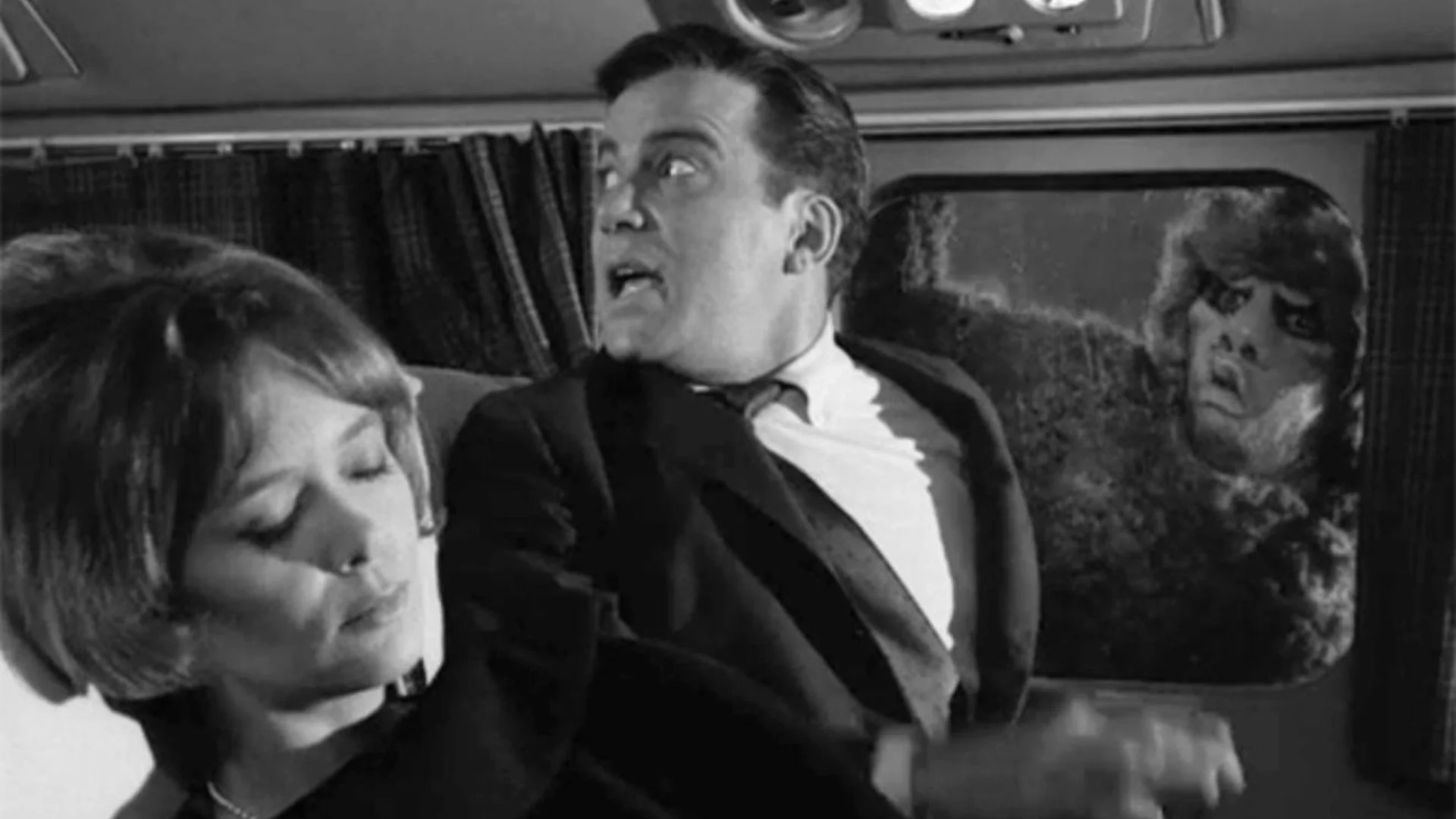 “Nightmare A 30,000 Feet” tells the story of a man, fresh out of a mental hospital, in an airplane who sees a gremlin on the wing tearing into the engine.
