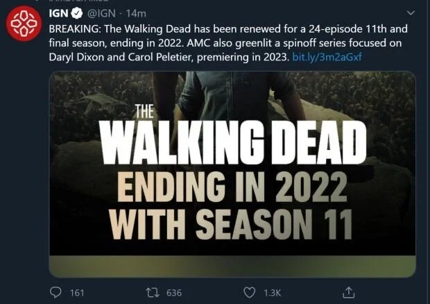 It looks like AMC’s flagship series The Walking Dead is going to be coming to an end. Earlier this morning IGN shared the news on its Twitter page saying: