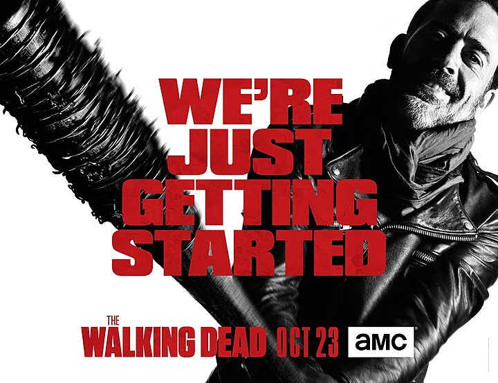 With a little more than a month to go until the premiere of season seven of The Walking Dead, AMC is ramping up its advertising campaign to make sure fans know that the show is coming back. Today, the network released a new piece of art with a threatening Negan front and center, lording above the tagline "We're Just Getting Started," as well as a new 30 second trailer for the upcoming season that features Ezekiel and The Kingdom.