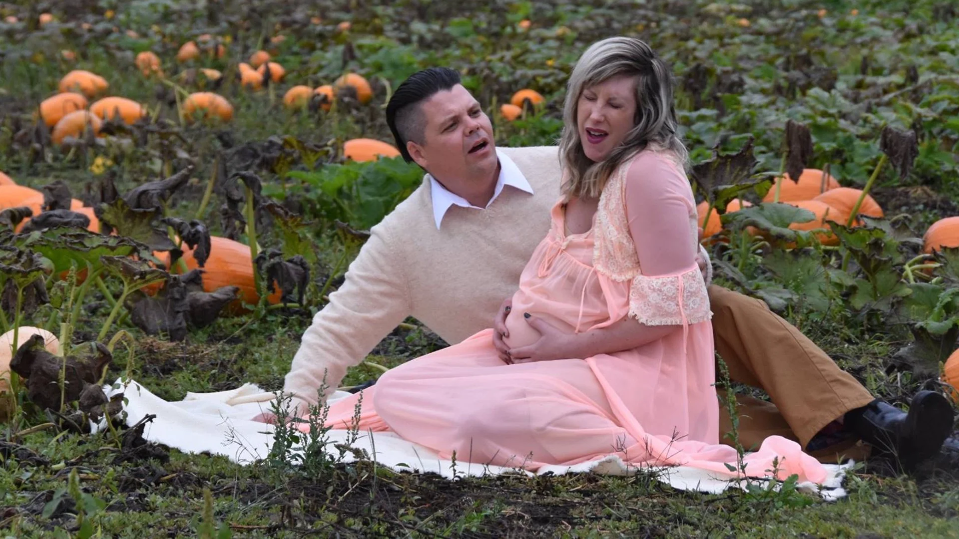 “The funniest part for us was laying in a cold wet field, covered in fake blood and just laughing our hearts out, hoping that the farm hands wouldn’t drive by and see us in our current conditions. I have to give huge props to Nicole for shivering on a rainy day in the muddy pumpkin patch and getting splattered with blood all while eight and a half months pregnant.”
