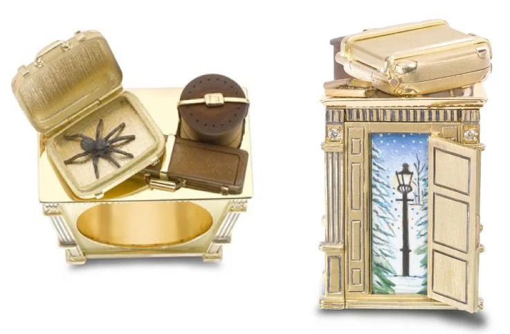 Neatorama has pointed us to this cool collection of rings from jeweler Theo Fennell, which feature small worlds contained within the rings themselves. You won't find prices listed on his website - they're so expensive, you have to request the price before he'll reveal it - but they're still fun to look at. The design and level of detail on display is pretty astonishing. I never thought you could fit all of Narnia on your finger, but I guess you learn something new every day.