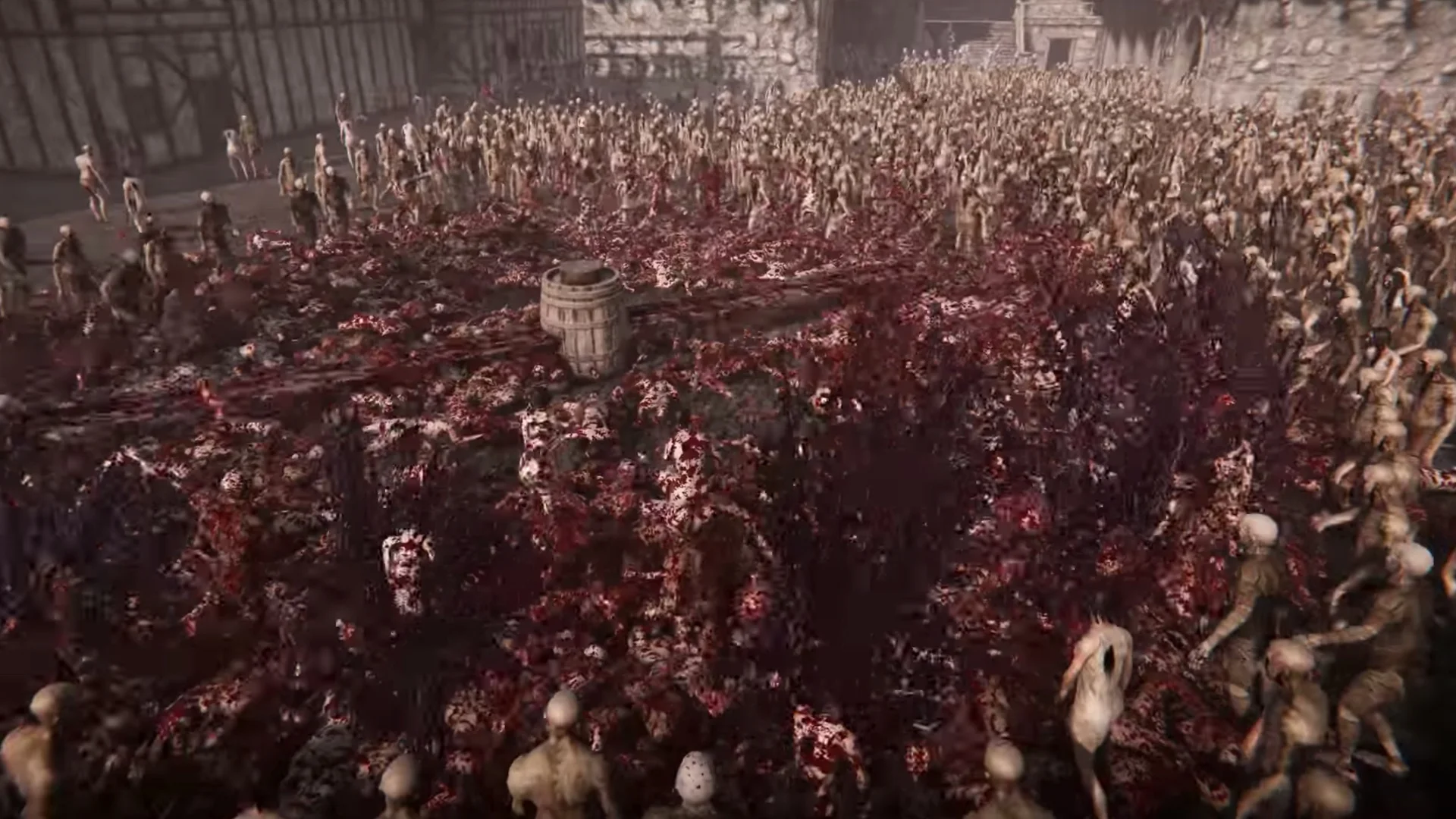 This is a tech demonstration by brilliantgamestudios showing off their new GPU accelerated dismemberment and procedural wounding system which allows limbs to be cut off on a massive scale. It’s also explained that the wounds from getting hit “appear as deep gouges which warp their mesh.”