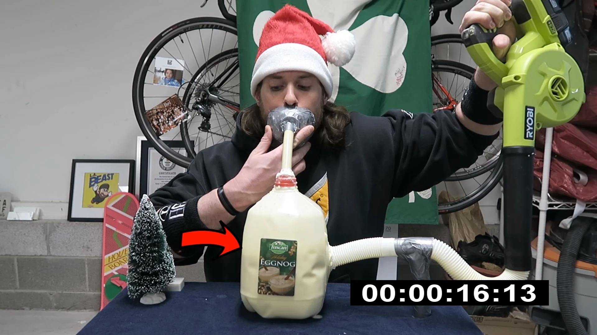 Looking for something dumb to try during the holidays? The L.A. Beast is always good for some dumb stunt to try, and this time he's getting in the holiday spirit by downing an entire gallon of egg nog in a minute and a half. Of course, he pukes like right after finishing, but I'm super surprised at how quickly he was able to glug that bad boy down!