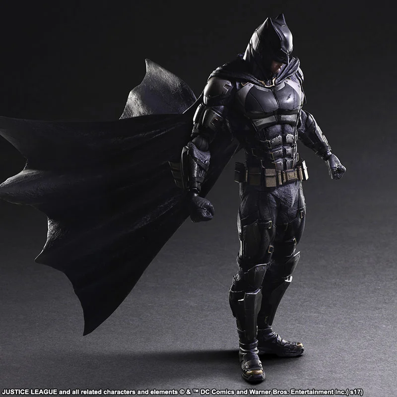 This new Play Arts Kai Justice League action figure from Square Enix gives us our best full look at Batman's new tactical suit yet! The great looking figure stands over 10" tall and it comes with multiple interchangeable hands, a Batarang and a grapple gun. It even comes complete with an articulated plastic cape.