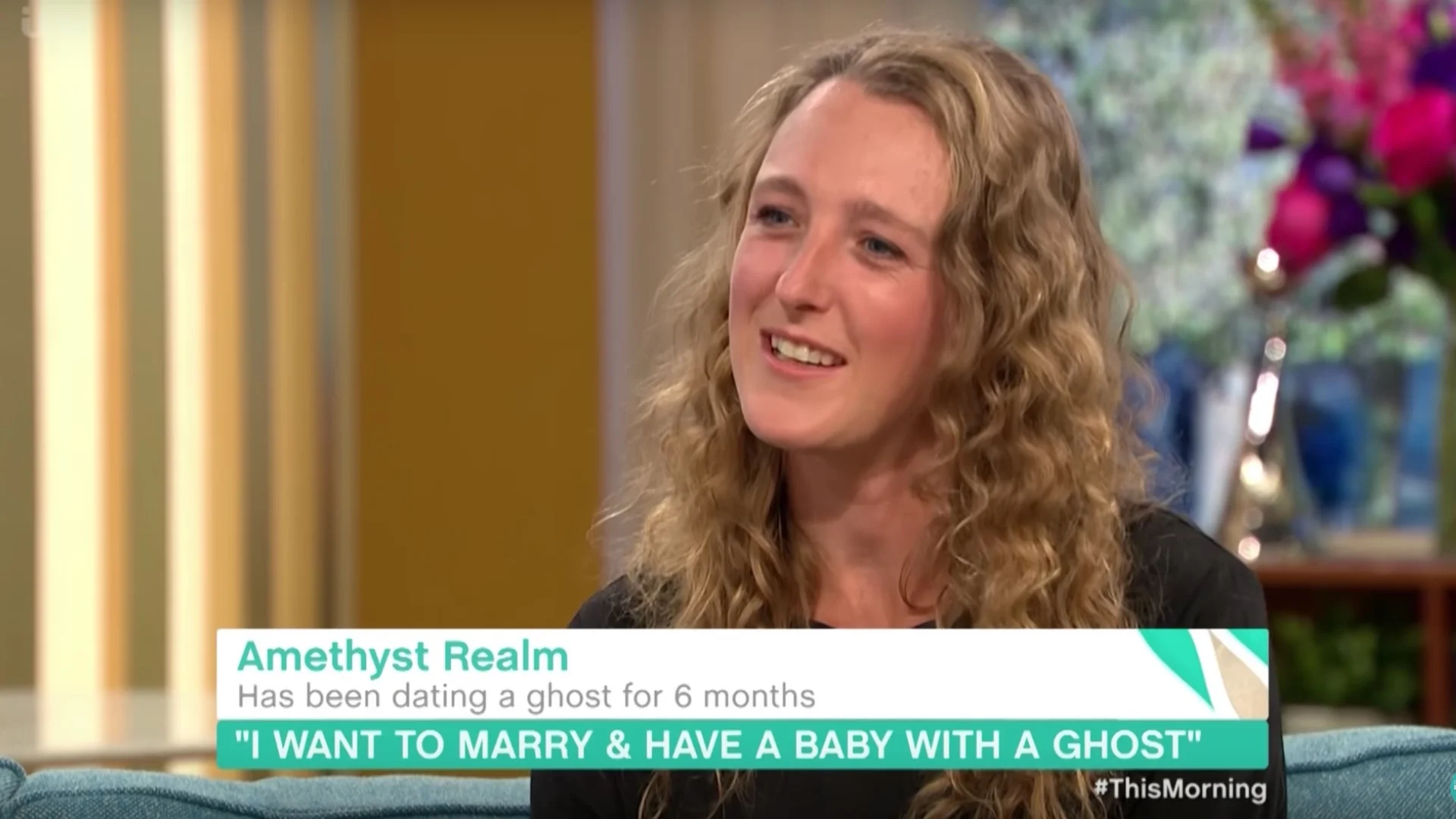 She talks about her experience on This Morning and says that her ghostly boyfriend is a "very ancient, very wise, very kind," and this has caused her to fall in love with him and want to marry him and start a family. I have no idea how that would work! Luckily, she explains.