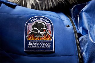 But what makes collectors’ hearts beat faster are meticulously recreated details like the bold blue design, shoulder stripes for heightened visibility, the Darth Vader chest patch, Star Wars logos, and a removable and customizable name plate on the chest pocket. And to honor the exact location where the intrepid cast and crew braved sub-zero temperatures to film some of the most memorable scenes on film, we’ve incorporated the coordinates of the Hardangerjøkulen Glacier into the lining of the jacket.