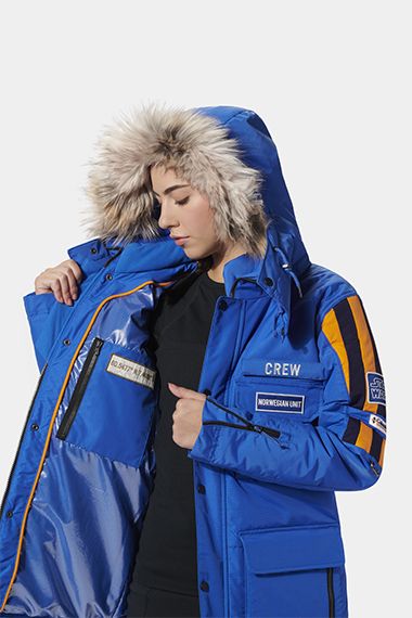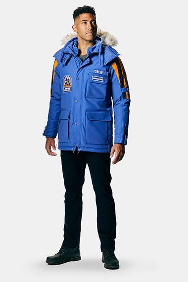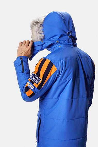 Vintage design meets modern technology in the limited edition Star Wars Empire™ Crew Parka, an officially-licensed jacket inspired by the coat worn by The Empire Strikes Back cast and crew while filming in sub-zero weather in Norway. Worthy of ice planet Hoth, the waterproof-breathable shell with Omni-Heat™ thermal-reflective lining and 200g insulation will keep you as warm as a Wookiee. Authentic details include a bold blue design with security stripes, Star Wars patches, geographical filming coordinates in the lining, and a customizable name plate on the chest pocket.