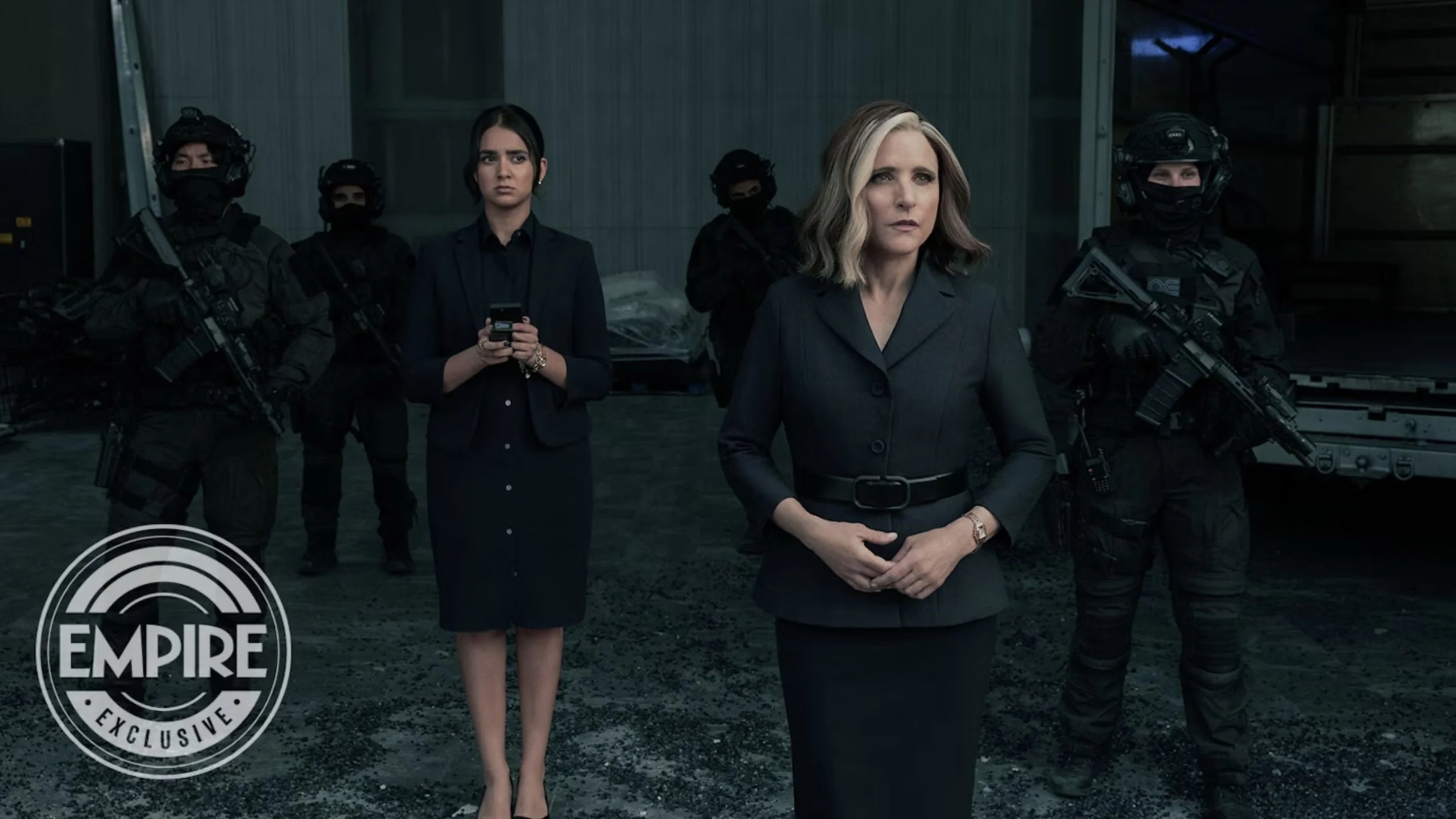 We also have a new image from the filmfeaturing Val standing alongside Geraldine Viswanathan’s mystery character, rumored to be a new version of Songbird. As the film gets closer, it’s becoming clear that Val’s plans, and her new headquarters, are setting the stage for something big.