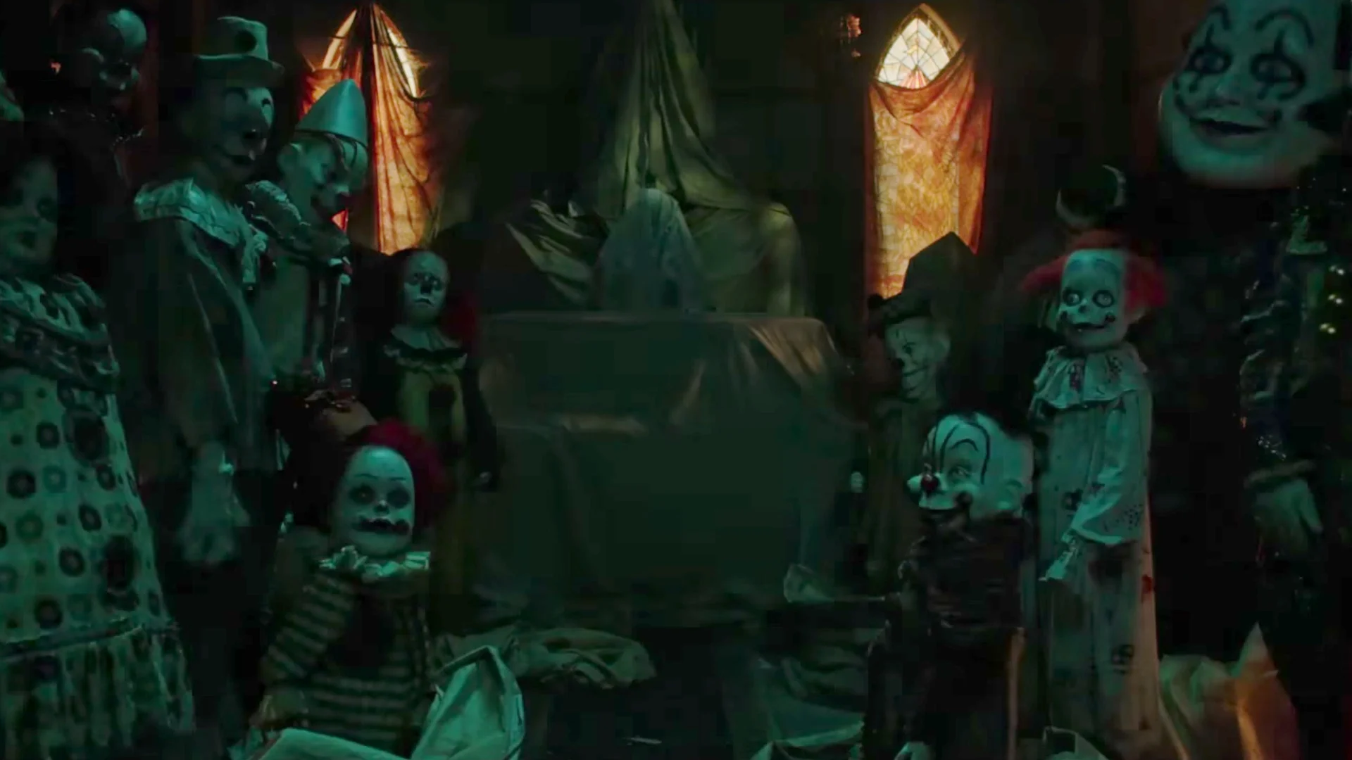 As you can see, they included a doll version of Curry's Pennywise in the scene that featured a room full of freaky-ass clown dolls. There's no way in hell I would ever step into a room like this! Anyway, you can check out a better shot below.