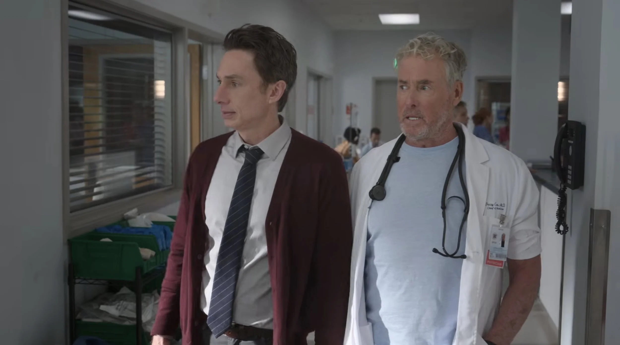 The trailer reunites Zach Braff as Dr. John Dorian, Donald Faison as Christopher Turk, Sarah Chalke as Elliot Reid, John C. McGinley as Dr. Cox, and Judy Reyes as Carla Espinosa.