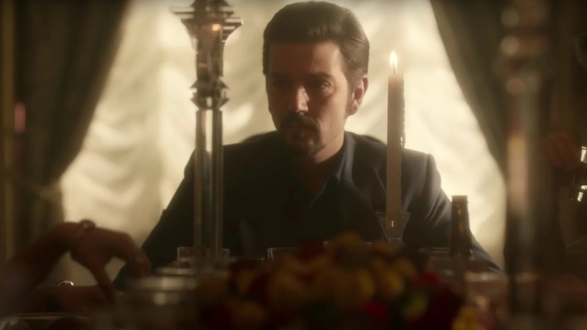 In Narcos: Mexico season 2, “Félix must cope with the U.S. and the consequences of his actions against the DEA while facing discontent within his organization.” The trailer doesn’t offer much in terms of the story that the series will tell, but it’s titled “Party’s Over” and it stages a Last Supper-style dinner with Félix at the head, and he is joined by several guests who are hiding guns.