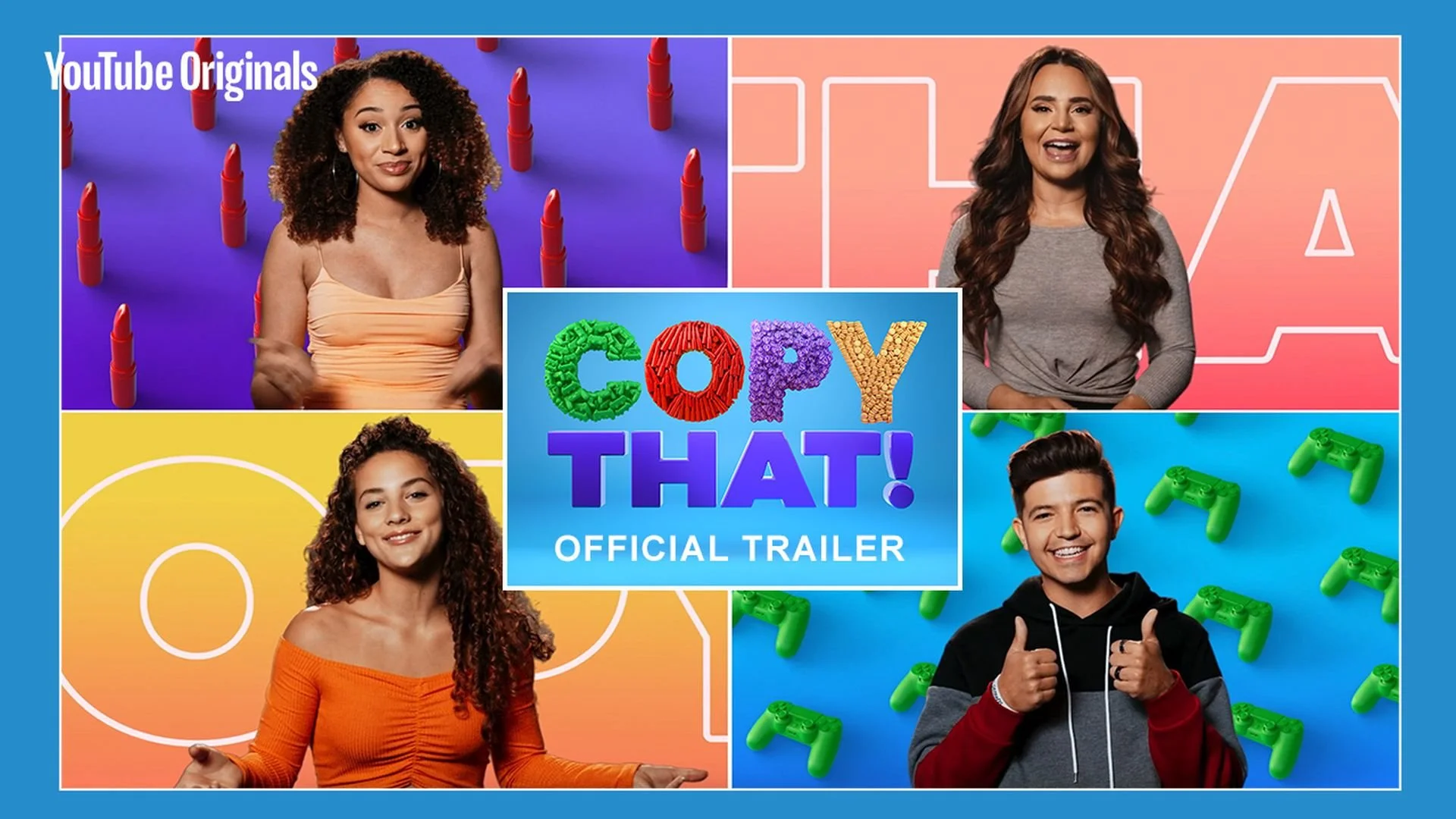 YouTube has released a trailer for their new comedy competition show, Copy That. Four big creators, Sofie Dossi, Lisette aka Luhhsetty, Rosanna Pansino, and Preston will each demonstrate their particular skill and the others will have to try to recreate it with hilarious results.