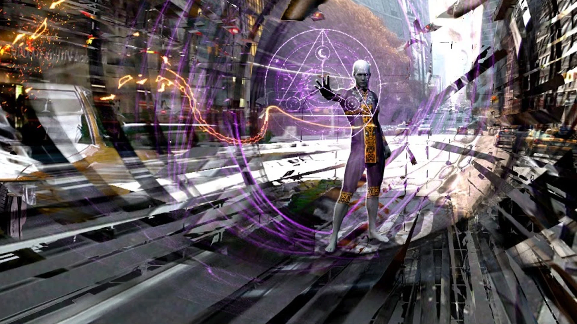 Then we have a series of pre-production art created by artist Oliver Pron, and they show us what they were envisioning early on in the action sequences involving the Mirror Dimension of the villainous Kaecilius and his Zealots.
