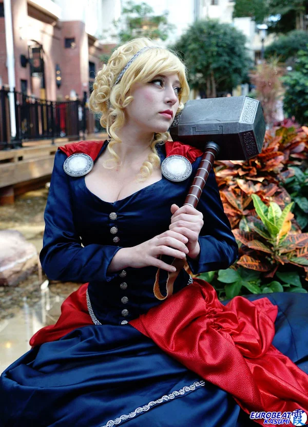This Victorian-themed Thor was created by cosplayer Koneko YourAverageNerd and it’s absolutely beautiful. She showed off the dress at Katsucon 2016, which you can watch a video of right here. This just needs a little top hat inspired by Thor’s helmet. The photos printed here were taken by Eurobeat Kasumi Photography.