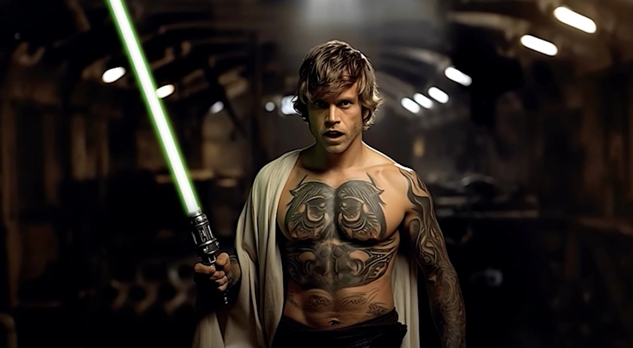 The video comes from Yellow Medusa, who said: “Thanks to AI technologies, we can explore what George Lucas Star Wars might have looked like if they were directed by Guy Ritchie. In this video, I use the power of artificial intelligence to see how characters Luke Skywalker, Han Solo and Chewbacca, Princess Leia, Darth Vader, Obi-Wan Kenobi, Yoda, Jabba the Hutt, R2-D2, C-3PO would look like in a different universe.”