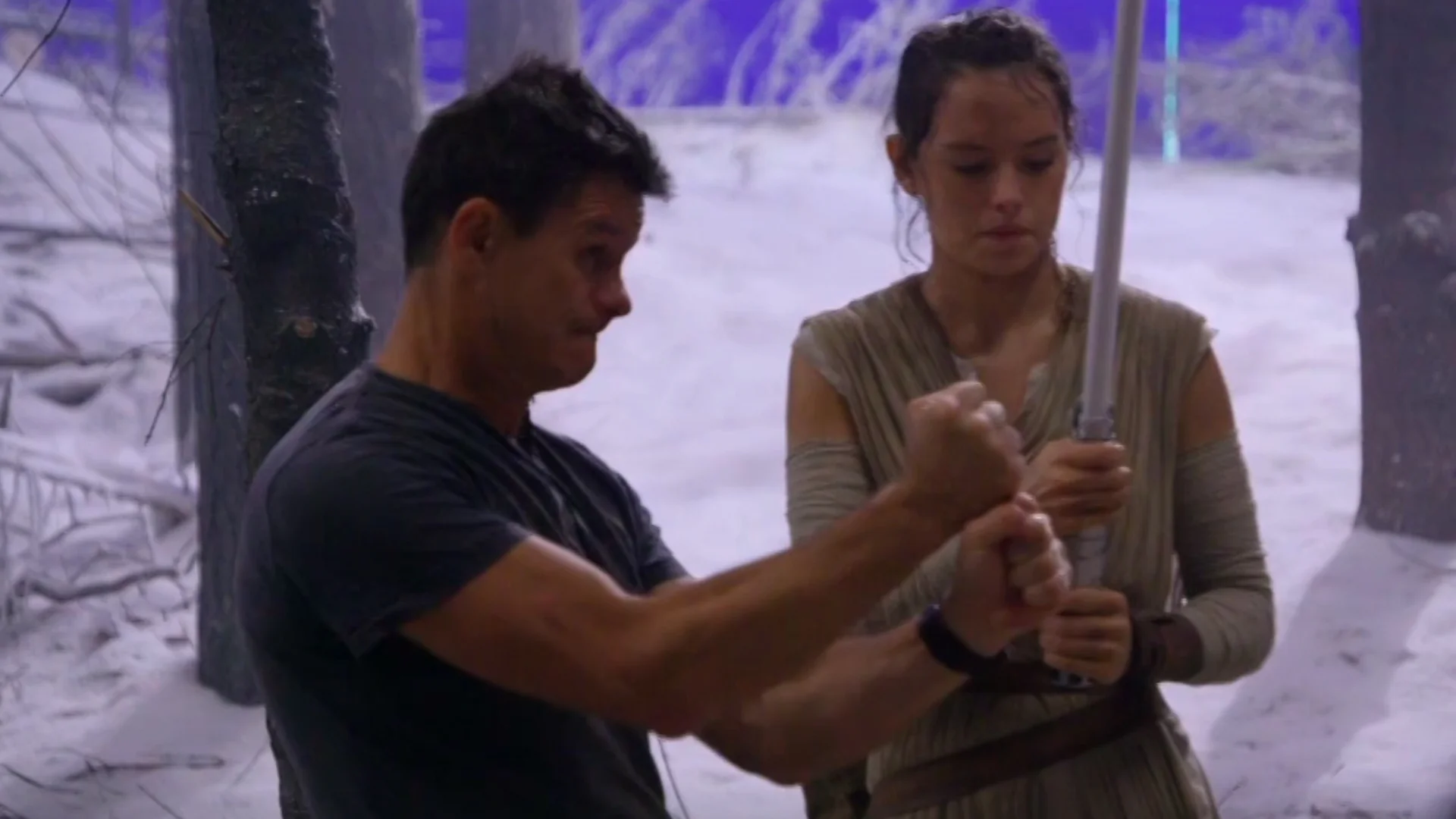 Watch: Daisy Ridley and John Boyega Training with Lightsabers For THE FORCE AWAKENS
