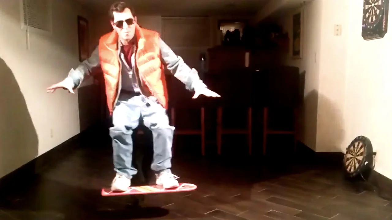 It may not be an actual hoverboard, but it’s definitely much cheaper than riding a real magnetic hoverboard or arranging an elaborate, albeit obvious, hoax with celebrities.