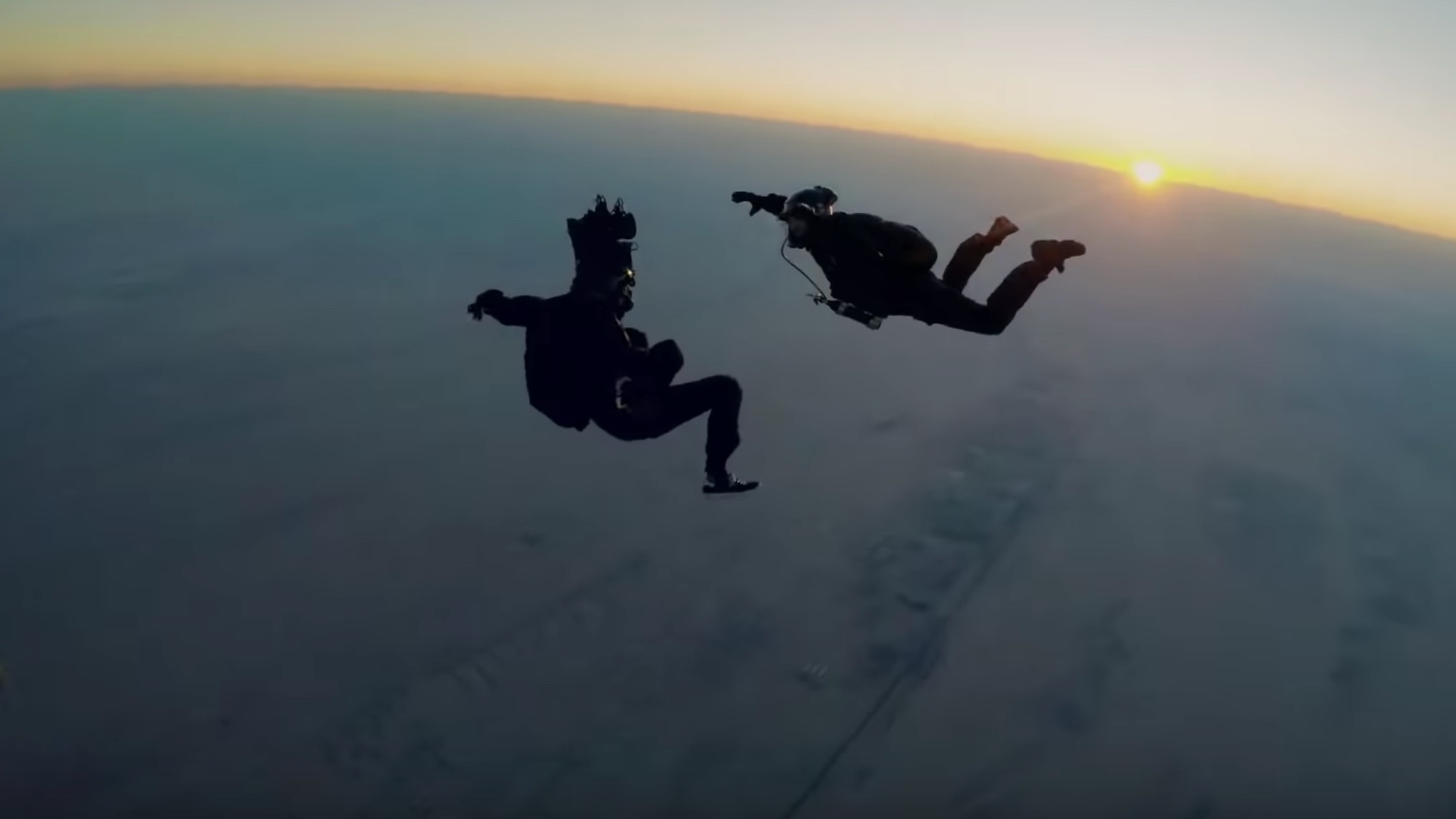 The three-minute scene takes place above Paris at sunset. Hunt and CIA agent August Walker (Henry Cavill) skydive at 25,000 feet into a freakin' lightning storm and are struck by lightning while in free fall and that leaves Walker unconscious, requiring Hunt to somehow catch Walker and revive Walker before they hit the ground.