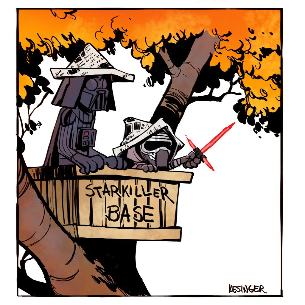 Artist Brian Kesinger won’t stop with the Calvin & Hobbes Star Wars art and I hope he never does! We’ve already done a couple posts featuring characters from The Force Awakens in the style of Calvin & Hobbes that you can see here and here. Now we have a few more pieces that I know you’re going to love.
