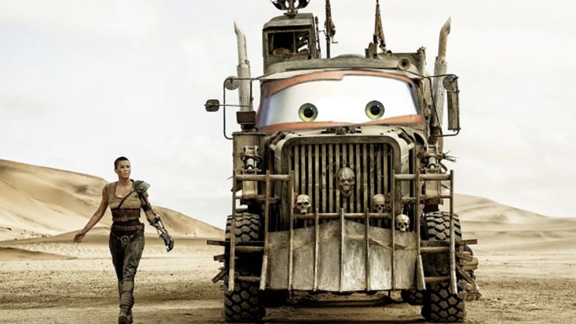 Comedian Paul Savage hilariously envisions the world of Mad Max: Fury Road with the crazy cars as Pixar characters. He's basically taken the eyes of characters from the Cars movie and slapped them on the insane vehicles of Mad Max.