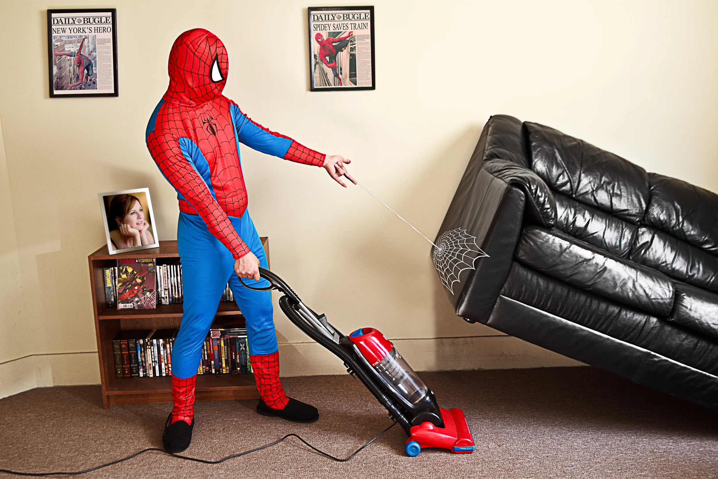 Crime never rests. But superheroes do. With few exceptions, heroes still have day-to-day tasks just like the rest of us. Extraordinary skills and super abilities could make chores easier, or they could make the job seem even more frustrating and menial. Los Angeles based photographer Jeff Harmon explores this concept with this fun series of photo illustrations. Jeff gave us a little background on the inspiration behind the photos saying: