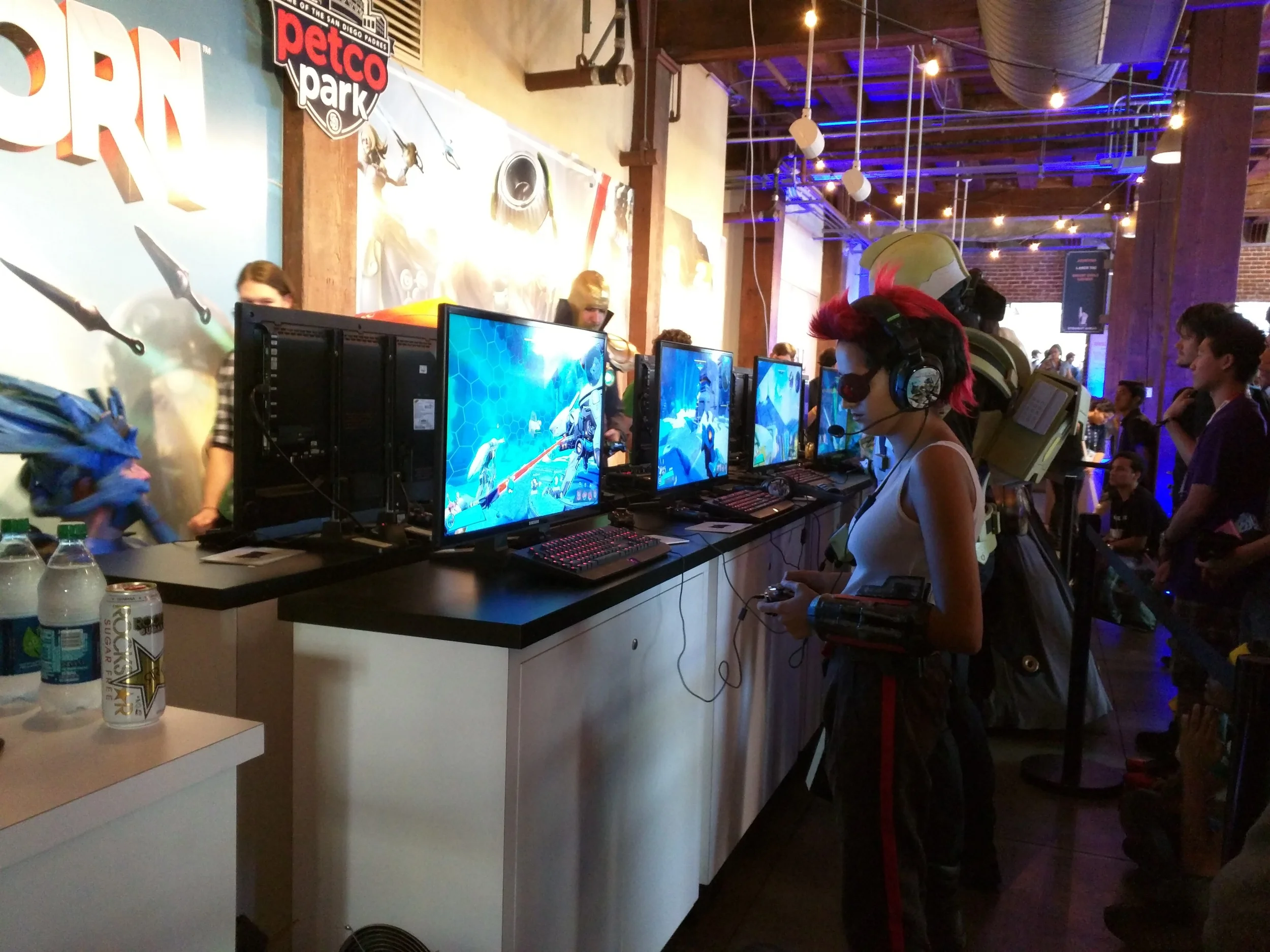 After a short wait in a very friendly line full of amazing cosplayers, I had my wrist band that let me come and go as I pleased. While the Nerdist's Conival at PetCo Park felt like a tiny version of Comic-Con, Nerd HQ is more like hanging out and playing video games with your friends. There are a handful of panels you can pay a small fee to attend, and a good chunk of those fees go to the charity organization Operation Smile that helps children born with a cleft palate enjoy a healthy and normal life. But if you're really doing SDCC on a shoe-string budget, there are a handful of things to do for free. Along with just hanging out and mingling with fellow geeks and stars alike, there were demo stations of EA's up and coming blockbuster game Star Wars Battlefront, with lines exponentially shorter than those I waited in at E3! (The crew and I got in a solid couple of rounds together in less than an hour!) There was also a bar and an army of food trucks to keep you energized and geeking for hours.