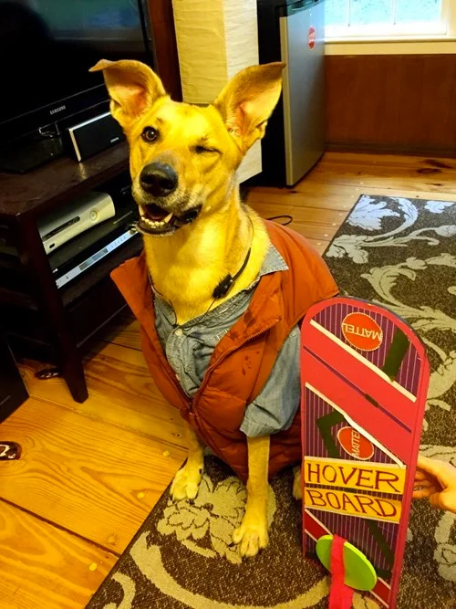 What if Back to the Future director Robert Zemeckis changed the casting of Marty McFly for the third time and replaced Michael J. Fox with a dog? That’d be one cute movie, as evidenced by this cosplaying dog (via Reddit). It’d also be insanely silly. How silly? About as silly traveling to the future to fix an easily preventable event that won’t happen for 30 years — lookin' at you Part 2. So it’d be fun, but kinda pointless when you actually think about it.