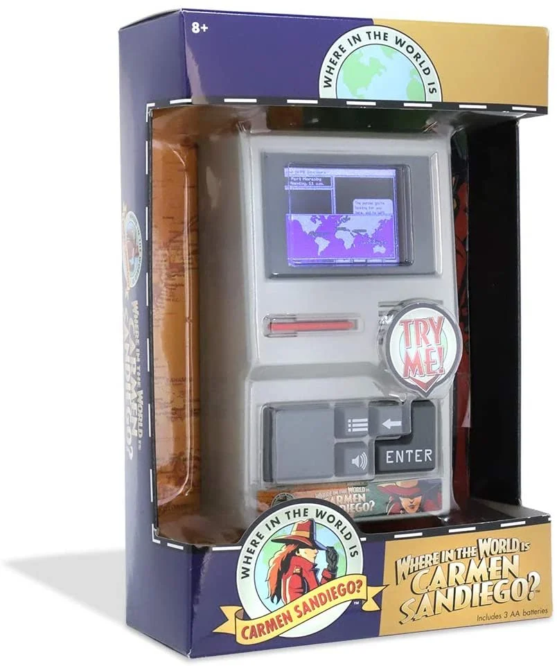 One of the most popular computer games of all time, where in the world is Carmen sandiego, is back in this handheld edition! Now, a whole new generation can enjoy this classic crime-solving game! Complete the missions by traveling around the world to find clues and catch the villains working for Carmen sandiego, the international criminal mastermind. Make it to the end for a chance to catch Carmen sandiego herself – don’t let her get away! Includes 3 AA batteries. Ages 8+