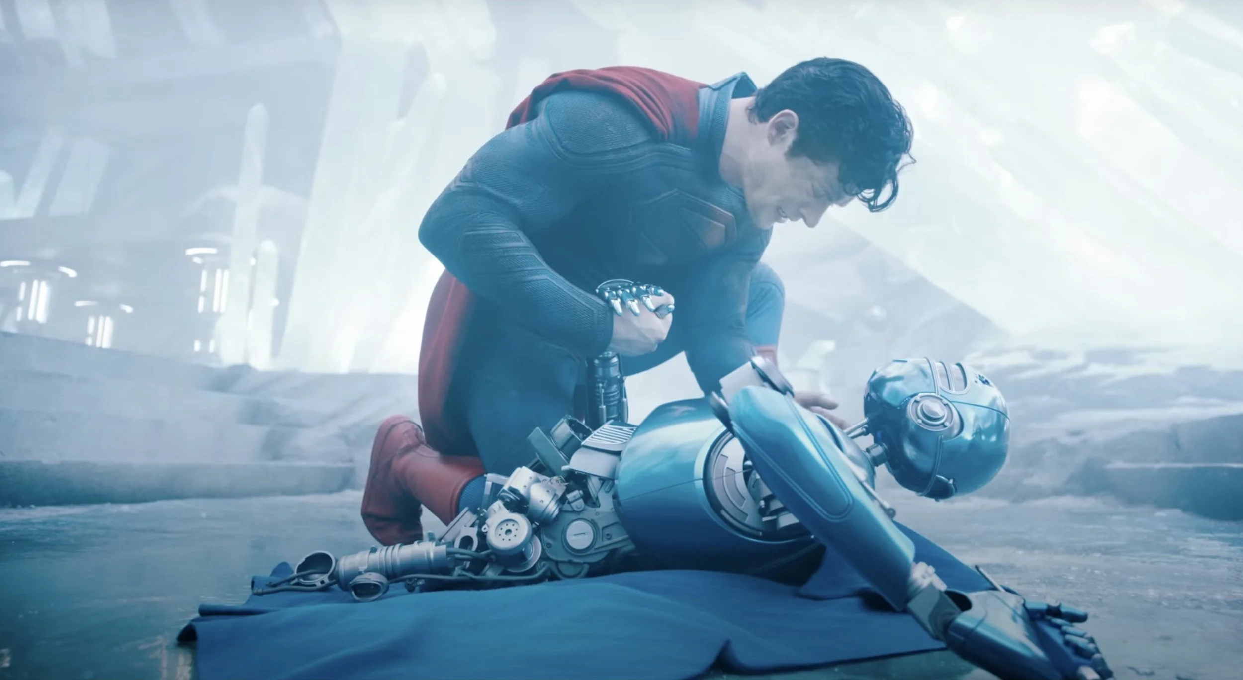 In the recently released trailer for James Gunn’s Superman, there’s a brief glimpse of a scene where Superman is kneeling inside the Fortress of Solitude, and he's holding the hand of a damaged robot. If you look at Superman’s face in this scene he is pained to see this robot in such a dire situation.