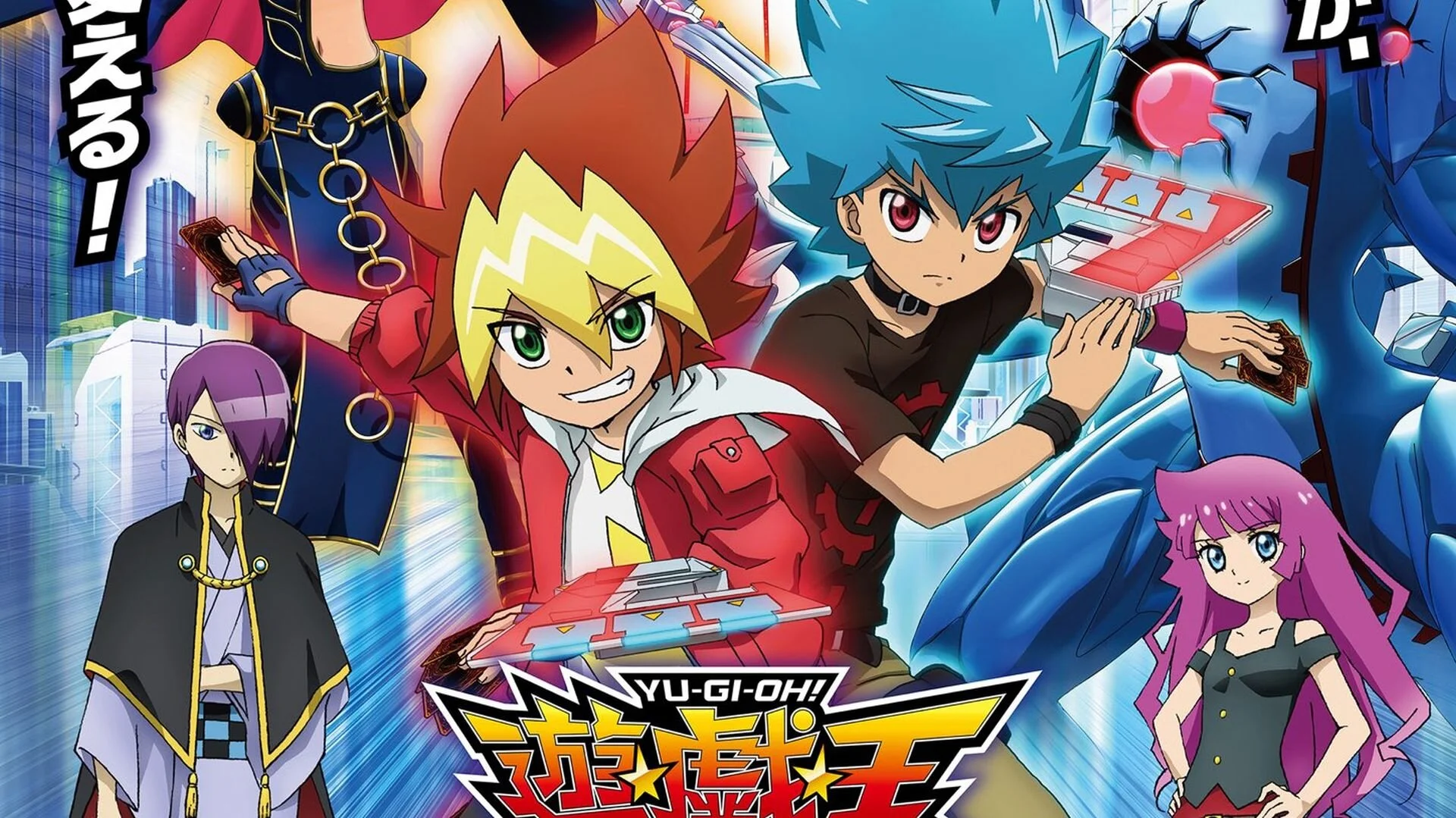 “The anime will feature a protagonist in elementary school for the first time in the franchise. The anime will have a new ‘Rush Duel’ rule. The anime takes place in the future in the town of Gōha. Yūga Ōdō, a fifth-grade student, loves both inventions and dueling. His classmate Luke is a self-styled ‘number one duelist at Gōha 7 Elementary School.’ Gakuto is the school’s student council president, and Romin is Yūga’s classmate.”