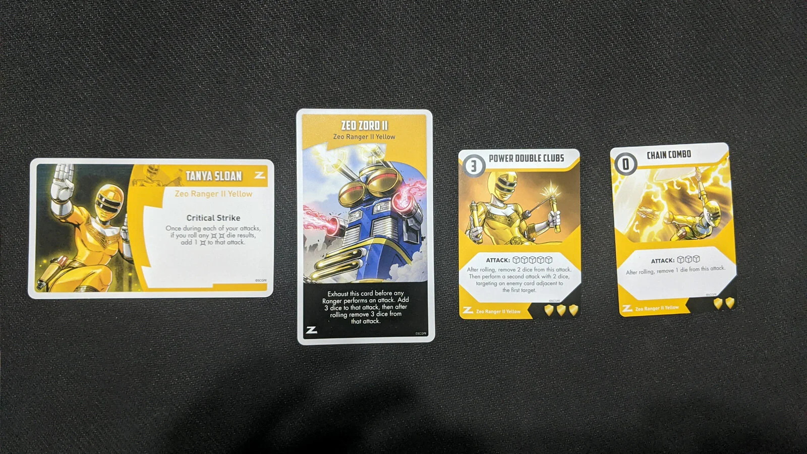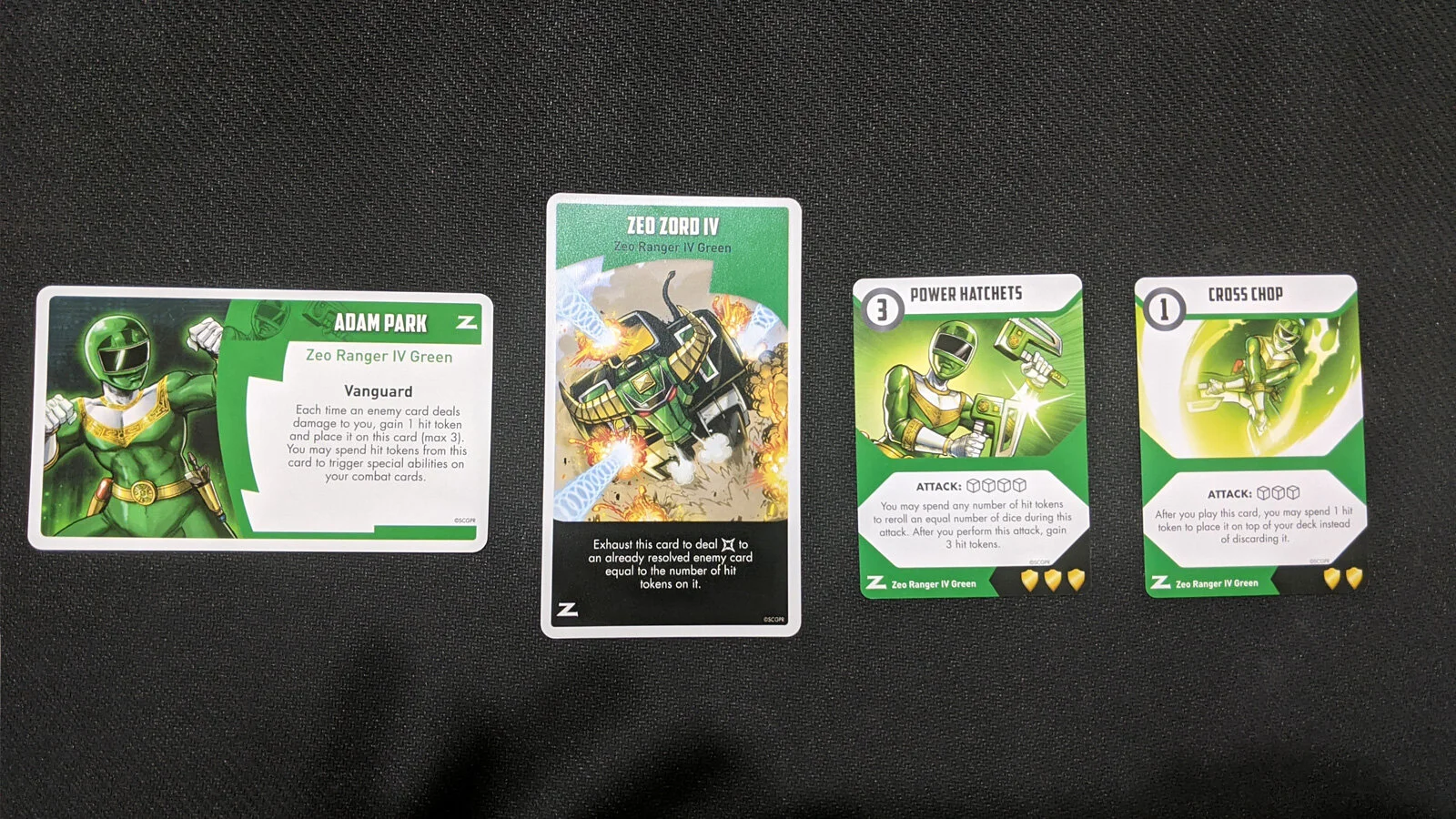 Zeo Ranger IV Green is Adam Park who gains hit tokens whenever he takes damage. This is in addition to the damage. These tokens can then be used with your combat cards to add dice, gain energy, and more. Zeo Zord IV can be used to double the amount of damage an enemy card has already taken. Adam is definitely going to be a powerhouse for bringing foes down.