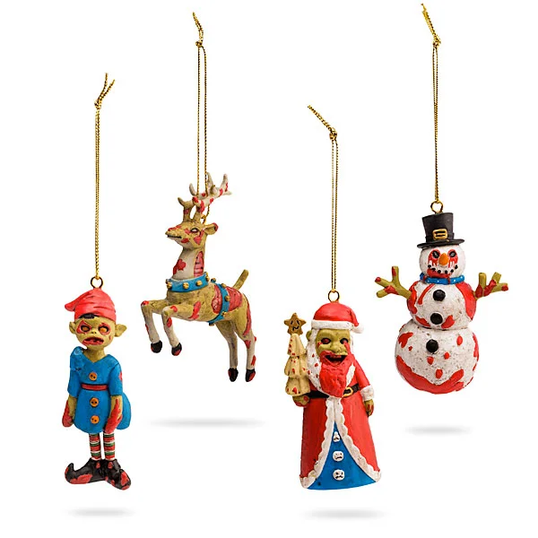 It’s not even Thanksgiving and we’ve already got a surefire way for you to ruin Christmas for your kids. "How?" asked all the horrible parents out there. Simply pepper in pieces from this Zombie Ornament set on your Christmas tree without telling your small children, then just wait for the screams, the crying, and the questions about why Santa and all the other ornaments are covered in blood. You can simply explain that Santa got tired of eating cookies, and that Rudolph’s nose is indeed red, but it just doesn’t glow so bright. Kids traumatized by Christmas - check! Never having to buy them Christmas gifts again - fingers crossed.