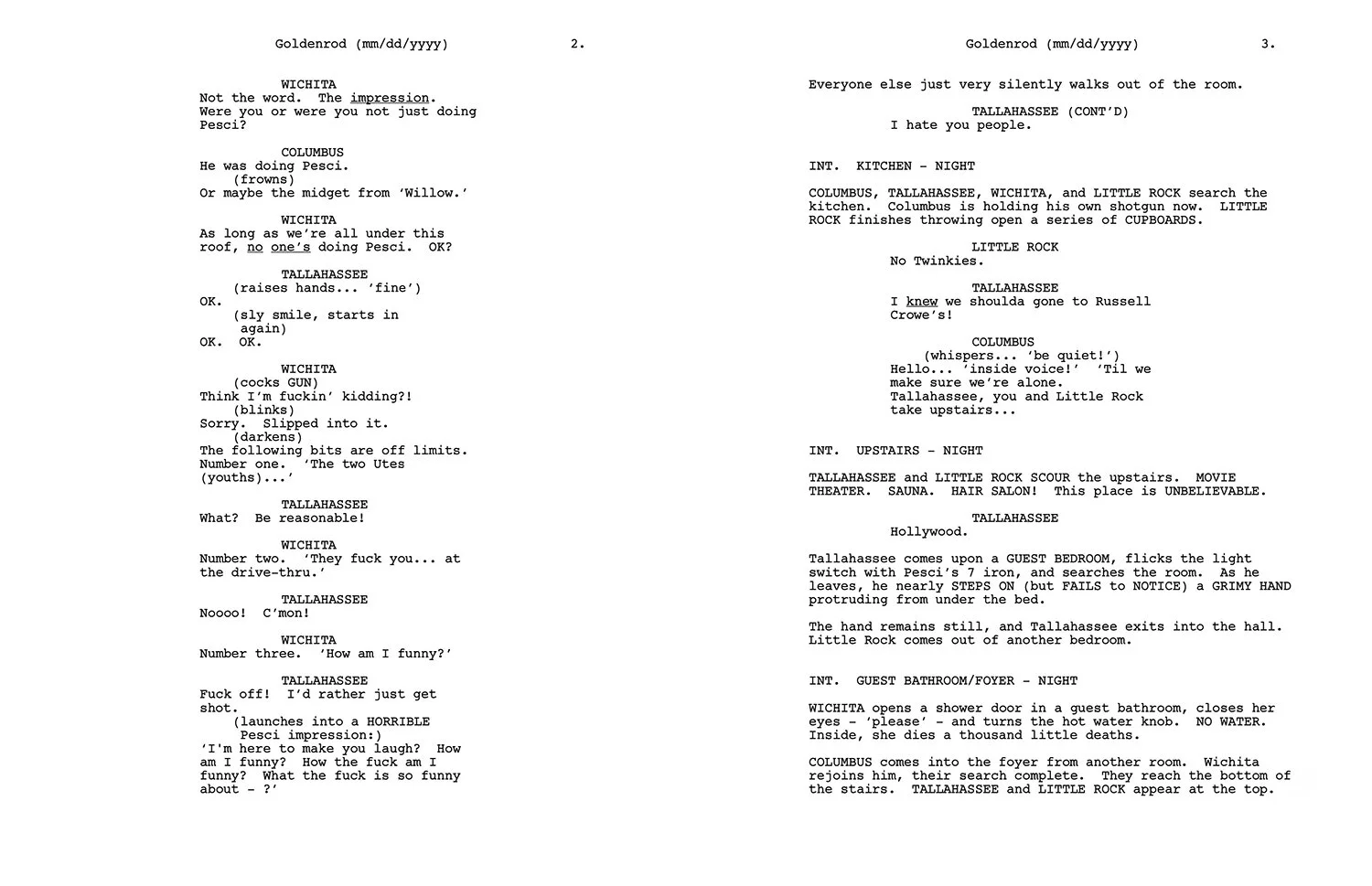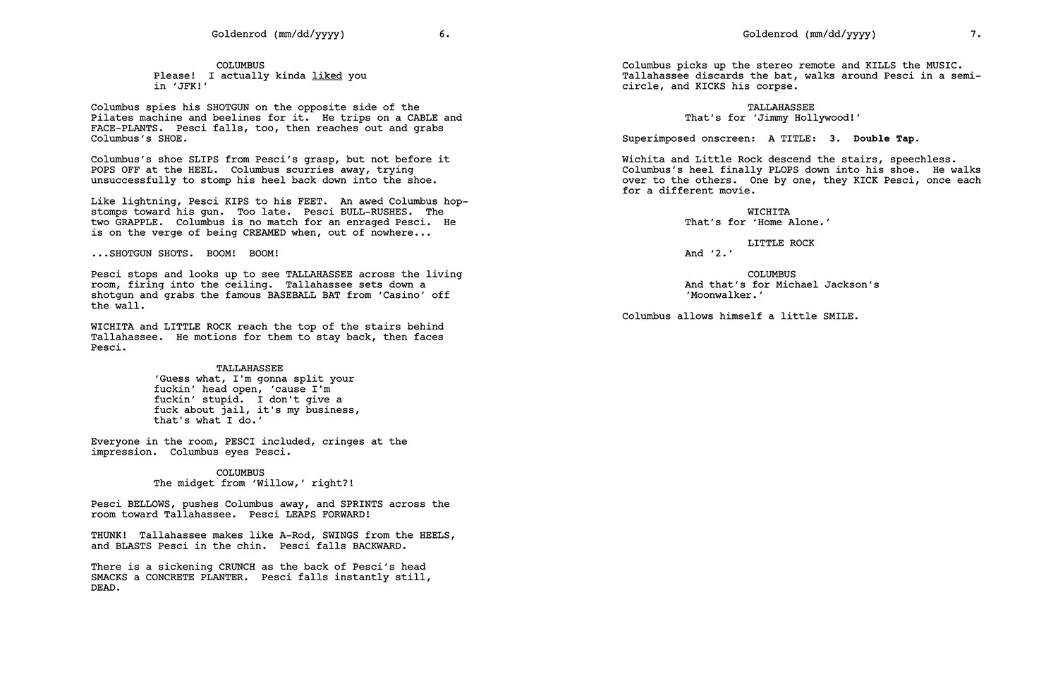 It would have been a ton of fun to see Pecsi in the film. As you might imagine, Woody Harrelson’s Tallahassee is a huge fan of Pesci, and called him the “Scariest. Motherfucker. Ever.” Now, enjoy reading the script pages for Pesci’s scene and let us know what you think!